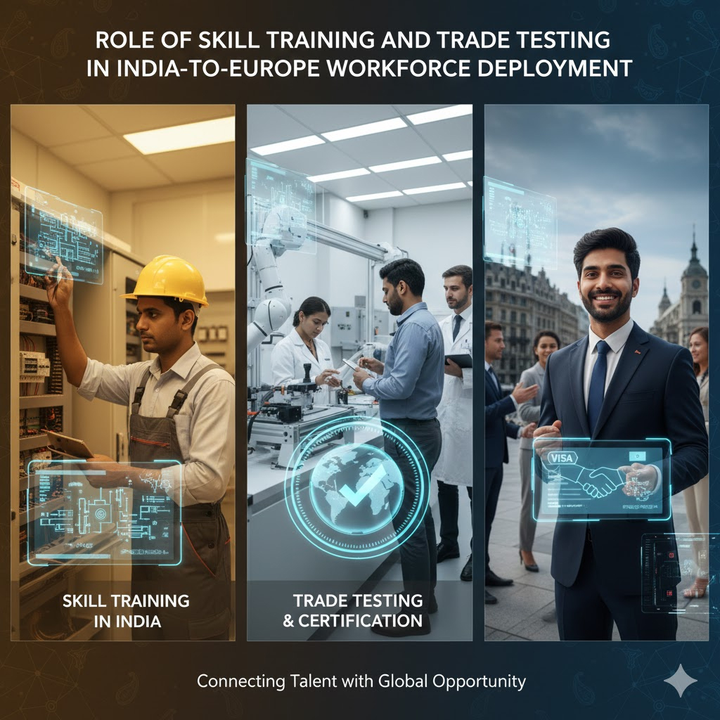 A major advantage of skilled manpower India to Europe recruitment is the availability of industry-standard skill training centers and trade testing facilities in India. These centers conduct theoretical and practical assessments to evaluate a candidateโs real-world skill level before placement.